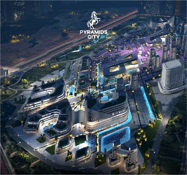 - PYRAMIDS CITY the first “Mega Mall” in the new capital in front of Al-Fattah Al-Aleem Mosque at the entrance of the new capital. PYRAMIDS City contains commercial, administrative and medical units. A huge commercial city plaza on 152.5 Acres.
